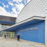 The high school’s design readily lends itself to the adoption of cutting-edge learning models and upholds the belief that learning happens everywhere. Its two halves express the dual concepts of flexibility and adaptability. One half houses the auditorium, gymnasiums, and activity rooms. Spatial requirements, such as the size of a basketball court, drive these spaces, but are also flexible—quickly changeable—due to their large size and open program area.