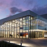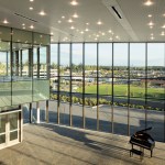 Broad expanses of glass—20-feet-tall—open the building to its surroundings and allow the community to look inside. On the outside, metal panels use three different textures in four different colors to create a pattern that divides the building into horizontal bands. These textures and colors not only animate the exterior envelope, but also provide a unique expression of the programs within.