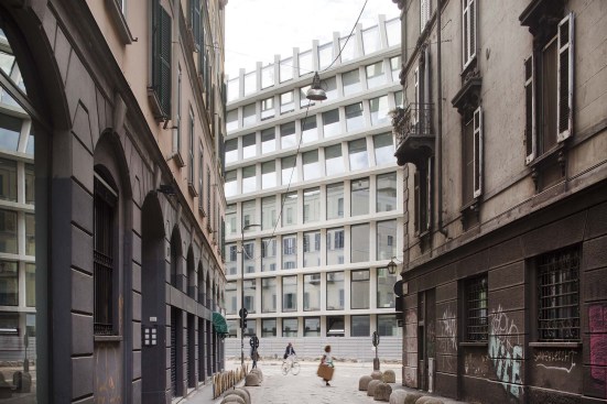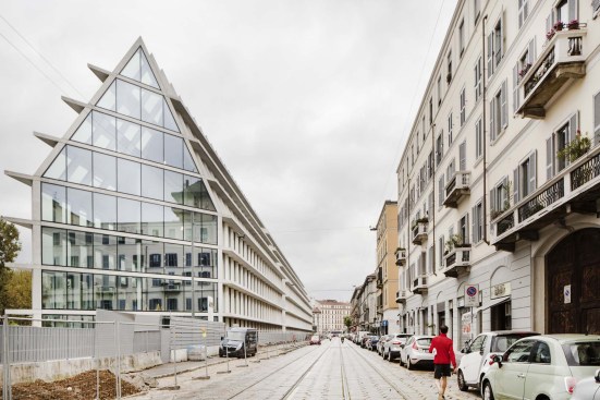 The new buildings are inspired by the simplicity and generous scale of historic Milanese architecture as Ospedale Maggiore, Rotonda della Besana, Lazaretto and Castello Forzesco. They are also inspired by the long, linear Cascina buildings of traditional rural architecture in Lombardy, which already were an important reference in Aldo Rossi’s work, for instance his residential building in Gallaratese. This is why we propose an elongated and narrow architecture which in a vaguely figurative way introduces a roof which melts into the facades. The structure expresses the geometrical conditions of the site in a rotation of its members and balances between transparency and spatial definition. Façade, structure and space form an integrated whole. The redefinition of Porta Volta will intrinsically be a Milanese Project, taking up themes of Milanese urbanism and architecture, which through the course of history have led to a series of emblematic buildings for which the City of Milan is renowned.