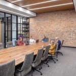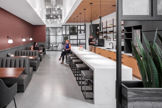 To support Ferrara’s transition from a traditional office into an innovative and collaborative space, NELSON Worldwide scattered workstations throughout the exterior footprint of the office, allowing employees better access to both each other and to natural light. These exposed sightlines encourage a more open and transparent culture along with creativity, while huddle rooms and private offices still give plenty of options for privacy and concentration. The space was also divided into “neighborhoods”—each equipped with conference rooms, huddle rooms and open collaboration spaces aimed at simultaneously fostering an open culture, as well as offering moments of respite.