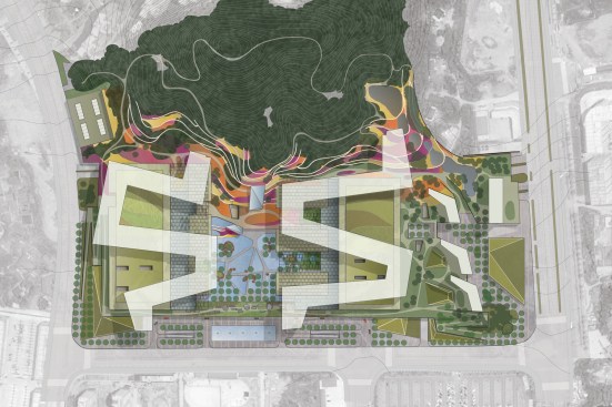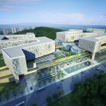 Located in ChangSha, China in the growing Tianxian district, the Fifth XiangYa Hospital is slated to anchor the developing community adjacent to Xianguling Park. The hospital is connected to the park, both physically and visually. The new 2,500-bed hospital will provide a new world class model for the delivery of healthcare in an integrated, efficient and uplifting environment. Each half of the campus is organized around a central concourse, along which all the clinical functions are organized. The meandering inpatient towers hover above it. Two levels of service functions and parking provide the operational base below ground.