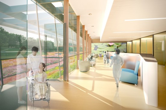 The hospital in a garden concept is achieved successfully by integrating all of the major spaces into a network of open gardens, private courtyards and natural lighting. A major component to the design, the green space, is just as important and functional as the medical space itself. We have used the gardens, courtyards and Xianguling Park to provide areas for circulation, community function, staff areas and public movement. The gardens act as areas of respite as well as wayfinding elements, leading people to access points, elevator lobbies and amenities.