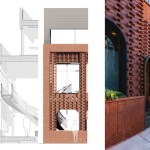 The four-layer screen also carefully balances light and dark while transforming brick into a contemporary and progressive expression. Each layer deploys a different bonding form, creating a rhythmic façade pattern that offers varying degrees of shade, shadow, and light. This sense of craft continues into the house with its custom kitchen and millwork, reminding visitors of the benefits that can result from exploration within traditional architectural prototypes.