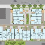 The firm placed the project’s flats and townhouses around a main courtyard, enabling outdoor circulation and cross-ventilation for every unit. “It’s just a modest project, which we tried to make really nice,” says principal David Baker, FAIA, LEED AP. Crisp metal trim outlines the fiber-cement siding that clads the exterior walls, while touches of copper and ipe add depth and texture to prominent spots such as the main entry and a corner bay. The common areas, too, show creativity and flair: landscape architect David Fletcher modeled the courtyard’s curvy planter after the shape of Kurt Cobain’s Fender Mustang and Jaguar guitars. —Meghan Drueding