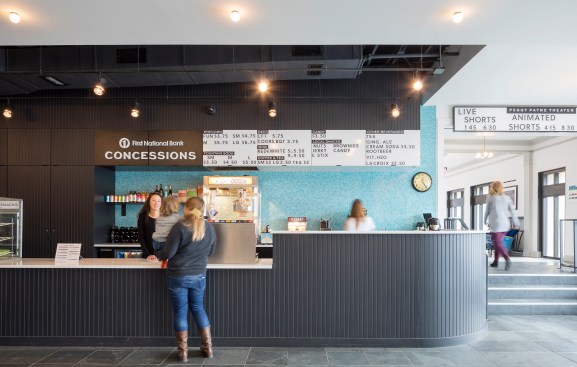In 2016 Film Streams embarked on a restoration project of Omaha’s last surviving single-screen neighborhood cinema, the historic Dundee Theater. The 91-year old theater, shuttered since 2013, is the second venue operated by the Omaha nonprofit. Completed in the winter of 2017, the project includes a 300-seat theater, supplemental space for programming and community events, a large lobby with a concession stand, Kitchen Table restaurant, a micro-cinema, and improved accessibility from the main entrance off Dodge Street, one of Omaha’s most highly trafficked streets.