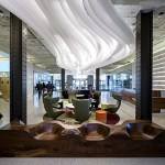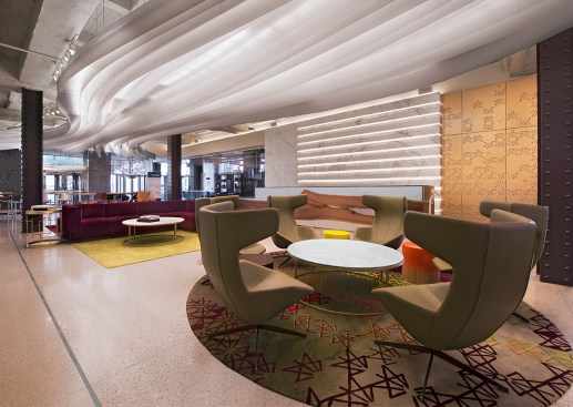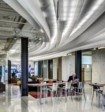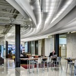 The design was inspired by the rich architectural heritage of Detroit and the ornate décor of the original ceiling that was exposed and incorporated as an important design element. This helped us respect the existing building even while we used new materials and exposed the space to vibrant and collaborative trends, which are essentially modern.