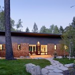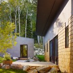 A disciplined use of materials gives cohesion to this small outbuilding, with cedar shingles and bonderized steel on the exterior and white oak floors, doors and millwork on the inside. Small bedrooms with large corner windows heighten the effect of truly living in the woods. Outdoor decks take advantage of the stream on the north and dappled sunlight on the south. The wooded site ruled out any active solar systems, but it is passively heated with the large south facing windows, and supplemental heat is provided by a wood burning stove in the central room. The structure is super-insulated from construction with simple shed roofs on both house and garage. The landscape design integrates the house into the site by preserving mature aspen and firs and using boulders excavated during the construction process for retaining walls and a dry wash to divert the spring runoff.