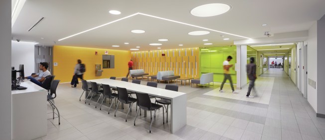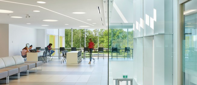 Gow Hastings also reconfigured the building’s layout, including the entry points and hallways, which now reflect the flow of student activity. Using its expertise in design for hands-on learning, the firm created new classrooms and even mock courtroom, ambulance, and hospital environments for the college’s Justice and Community Development and Health and Wellness programs, ensuring that students receive the standard of education that today’s technology supports.