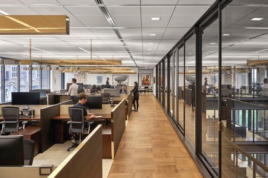 Wood: The building was very private office–intensive. As a whole, the design shifted to a predominantly open environment where you can see through the building. Almost everybody either has a view or a window, or looks onto the garden or the perimeter. And there was a treasure trove of beautifully detailed furniture and elements that had been in the project, so we used a substantial amount of existing furniture that was restored and refurbished.