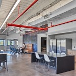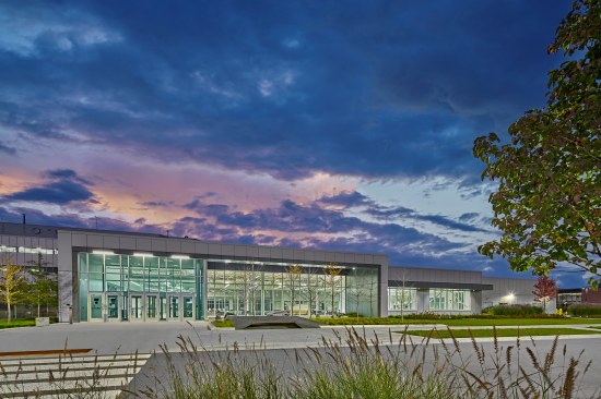 We completed current state analyses of the office tower and R+D facility, concluding that it was best to modernize the office tower, demolish the R+D facility, and replace it with a new amenities building. The office tower was reskinned with the interior completely renovated, including energy-efficient mechanical and electrical systems. In line with Ford’s modern workplace standards, the design moves away from formal, enclosed office spaces in favor of more open floorplans with low-partition workstations and collaboration areas. The amenities building houses a full-service cafeteria, conference center, shipping / receiving area, four-bay garage, and the complex’s main power distribution.