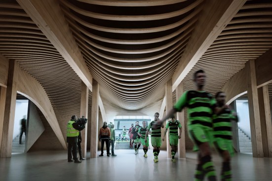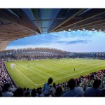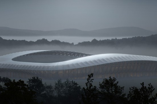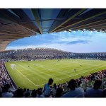 The Zaha Hadid Architects’ designed stadium will be the centrepiece of the £100million Eco Park development – Ecotricity’s 100 acre sports and green technology business park proposal, beside junction 13 of the M5 in Gloucestershire.