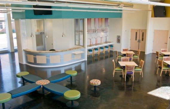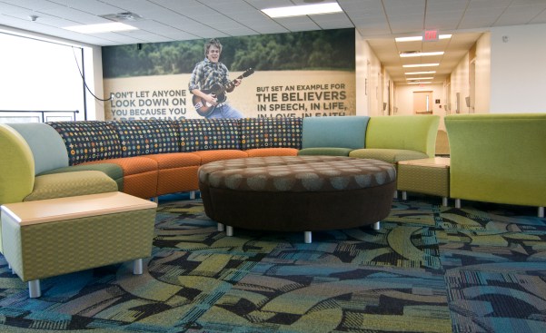 “The most rewarding challenge was to find a way to seamlessly blend traditional design elements of the existing church with modern youthful elements desired by a younger generation” says project designer Brenda Dean.