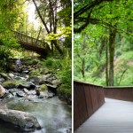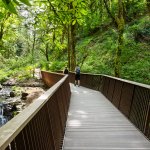 Taking inspiration from the verticality of the native Douglas fir groves of Forest Park, the vertical slats of the bridges emphasize views from the bridges up and downstream, and to natural environment beyond. Further enhancing the views, the railings are angled away from the path, inviting children and other users to pause, lean against the cedar handrail, and watch the moving waters below.