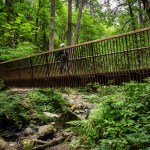 The design team created bridges made of 4’ modular components that can be brought to the site by hand, minimizing site disturbance and tree removal in this sensitive environment. Weathering steel structural components are highly durable and patina to tones that blend with the organic colors of the surrounding context.