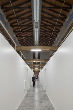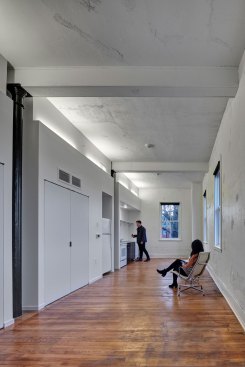 To convert the formerly open space into individual apartment units, the design team treated the new interior partitions and functional components as insertions in the historic volume. The original historic ceiling height is retained and restored in all the structures. The new interior partitions intersect with the historic shell minimally. The overarching goal was to prevent historically damaging interventions.