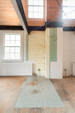 While Signal made thoughtful, research-driven changes to Makers Square, the beauty of the project lies in what was left behind. Throughout the design process, Signal discovered markings made by the Fort’s former inhabitants. Instead of covering the building’s past, the design team opted to integrate it into the renovation. Now, when visitors step into Markers Square, they’re immediately presented with imprints of Fort Worden’s history. Exposed remnants of old paint colors, removed cabinetry, shadows of long-gone equipment, and abandoned stairwells create a time-traveling effect and tell the story of what was there before. This rehabilitation approach ignites curiosity about the building’s 120-year-long past and inspires creative action from its future guests.