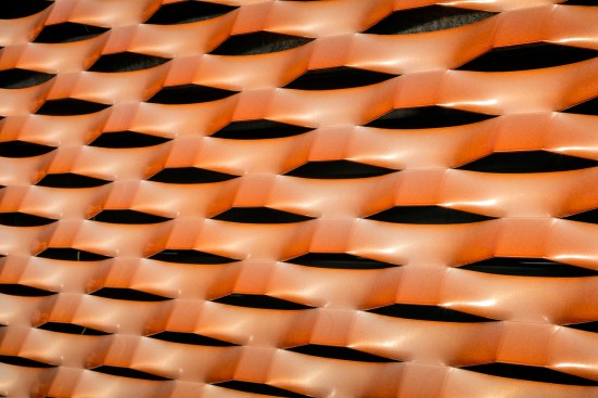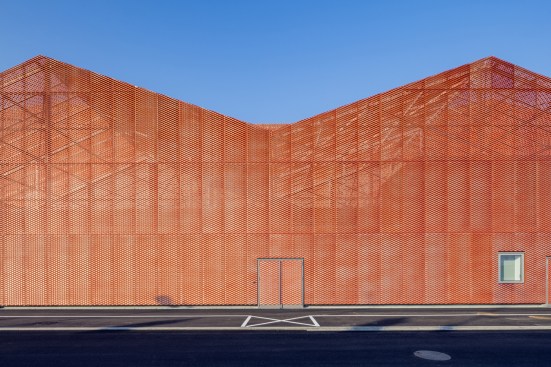 The building, made of 13 distinct volumes assembled in one big puzzle at the center of the site, is a harmonious answer to the surrounding individual houses. In the same time, the choice of a unique material for the whole building – a copper-colored expanded metal – makes it original equipment and a landmark in the city of Saint-Louis.
