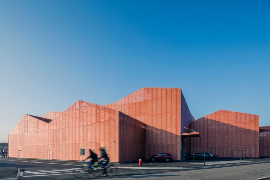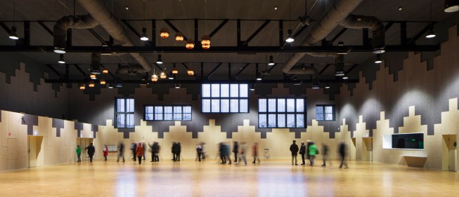 The inspiration has come from the context, which combines big orangey interlocking tile roofs with some industrial brick chimneys reminding the industrial past of the site.