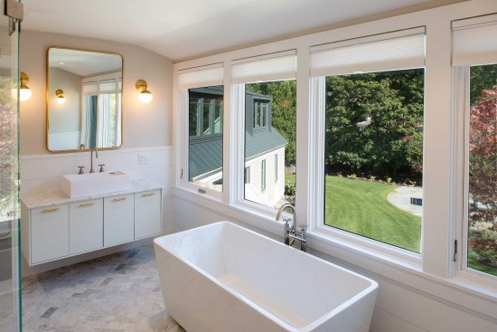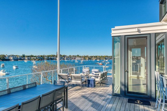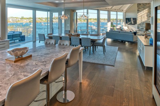 Overlooking the Harbor in Marblehead Massachusetts. This new home is designed to take advantage of the dramatic waterfront views. The curved plan orients the interior space toward the harbor while the contrasting entry side becomes sheltered and more private space to enjoy the vegetated landscape.