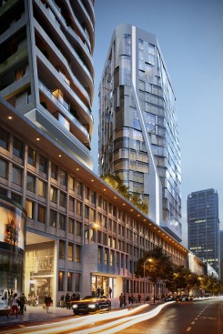 The new high-rise complex will be integrated into the expanding city structure by incorporating the heritage-listed facades of the Junghofstraße into the design and by making a multi-storey base building the connecting element of the entire site.
