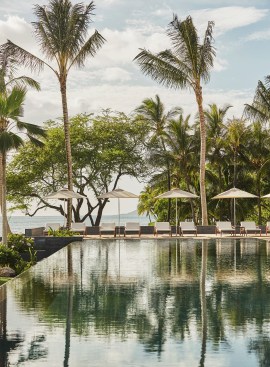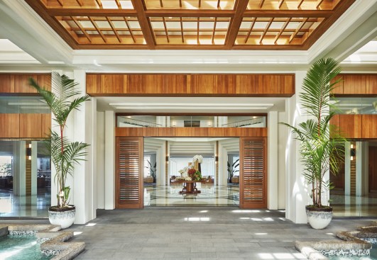 A five-star resort community, Ko Olina encompasses 642 acres (260 hectares) on Oahu’s western coast, just 35 minutes from downtown Honolulu. The new jewel in the crown of Ko Olina is the Four Seasons. de Reus Architects led the design team in the re-branding of the former J.W.Marriott, converting the property into the five-star Four Seasons Resort Oahu at Ko Olina. The team led the repositioning of the outdated 1985 Killingsworth-designed hotel into a one-of-a-kind luxury holding for the developer and investors. While the hotel had a durable and expressive structure, and gracious sized guest rooms, it suffered from inadequate and tired amenities, neglected finishes, mediocre landscaping and FF&E. The $100 million dollar refresh was extensive: The entire arrival experience from the street through to the lobby was enhanced The previous reception which blocked views of the ocean from the lobby was relocated to a discreet location to the side of the lobby with new concierge pods Wood detailing was added to the entry and the 17 story atrium to enrich the overall drama of the space and bring a gracious elegance to the experience. A new lobby bar, coffee lounge and outdoor lounge deck Redo all four restaurants Create a new outdoor dining terrace and natural water feature lagoon Create a new outdoor dining terrace at the Fish House A new Adult pool, with Service Pantry, Lounge Decks, Restrooms and Cabanas A new Family pool Refurbish the existing circular pool with new lounge terraces Create a new Chapel for weddings New Treatment Pavilions for the Spa Refurbish 358 guest accommodations (640 SF average) — including 52 suites New landscaping throughout New signage throughout