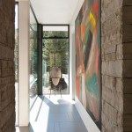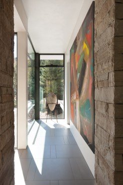 Off the entry, on the main level are three guest suites, a workout room with a walkout to the home’s hot tub, and art corridor leading to a sculpture wall.