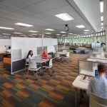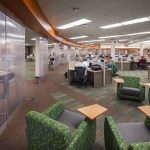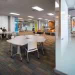 Fox Valley Technical College (FVTC) wanted to improve how it prepares a diverse student population for workplace readiness. With a goal to apply new concepts and technology to existing learning environments and support curricula focused on developing tangible job skills, the design facilitates real-world workplace situations and problem solving. The new building spans two stories and serves as a prominent entrance to the sprawling campus and a central point of wayfinding to students and visitors. To bring industry-leading concepts into the spaces, inspiration was drawn from diverse organizations like Apple and Patagonia. Elements such as a “Genius Bar,” concierge services, drop-in tutoring, flexible study spaces and integrated technology are ways in which this innovative support space is programmed for future student success. Early in planning, FVTC emphasized the importance of increasing enrollment, retention, academic support and student development. The layout and design bring instructor work areas closer together and collaboration spaces foster interaction and support peer-to-peer learning. Flexible furniture systems and technology are integrated throughout – from booths, to mobile tables and chairs, to lounge seats and rotating desks – providing students options when learning. A new interior streetscape acts as an organizing device, connecting key areas of the building, easing circulation and providing direct access to main programmatic spaces. The ‘Tree of Success’ installation behind the concierge desk is the heart of the Student Success Center. This 24-foot handcrafted tree features 57 leaves, each inscribed with a motivational word developed from students’ definitions of success. The trunk and branches of the tree were built by students in FVTC’s Wood Manufacturing Technology program. In total, the Student Success Center is an accessible, technology-based hub for student learning and development and provides a sense of place for students.
