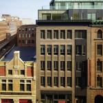 With this 99-unit adaptive reuse project, David Hacin, FAIA, set out to announce the rebirth of an entire neighborhood. Located in Boston’s historic Fort Point district, the building combines two turn-of-the-century woolen warehouse façades, a compatible, contemporary infill façade, and three new boldly modern floors that step back from the roof’s cornice line. “It was necessary to add square footage to make it [economically] viable, but we also wanted you to recognize that something had changed here,” explains Hacin, who designed the copper-clad upper floors to be more visible from a distance than from nearby.