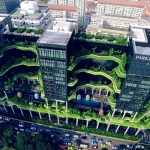 Three projects selected from WOHA’s innovative portfolio are the centerpiece of the immersive multimedia exhibition, designed to draw visitors into the vertical environments. Among them is PARKROYAL on Pickering (2013), an innovative hotel that has been celebrated for its topographical architecture and the blurring of boundaries between building and landscape; SkyVille @ Dawson (2015) boldly redefines the model for social housing development with its sky villages and lush gardens on multiple ground levels; and the Oasia Downtown Hotel (2016), enveloped by a living green façade, embraces the notion of breathing architecture and reimagines urban ecosystems for both humans and living creatures alike.