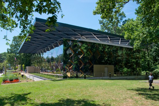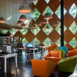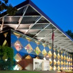 geometric progressions to reflect the dynamic, natural setting. Outside, the