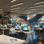 a singular surface is revealed inside to be a complex screen. Interior spaces