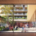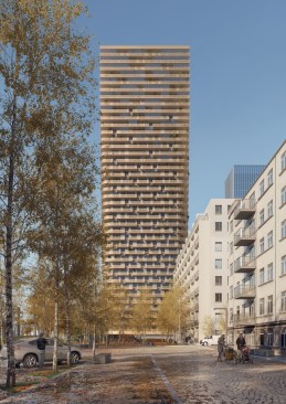 The approach to public space also contributes to this transformation. On the railway side, there will be a linear park that extends to the Central Station. On the city side, a green square will be added as a lively public space that will connect the area with the existing neighbourhood and with the centre of the city.The tower, with its glass and copper-coloured metal façade, was inspired by the industrial atmosphere of the location. As the train approaches the station, passengers are welcomed by this iconic tower. The design consists of an ensemble of two volumes on a plinth. The 140-meter-high tower contains social housing up to the seventh floor and owner-occupied units and penthouses on the higher levels. The lower volume consists of social housing.