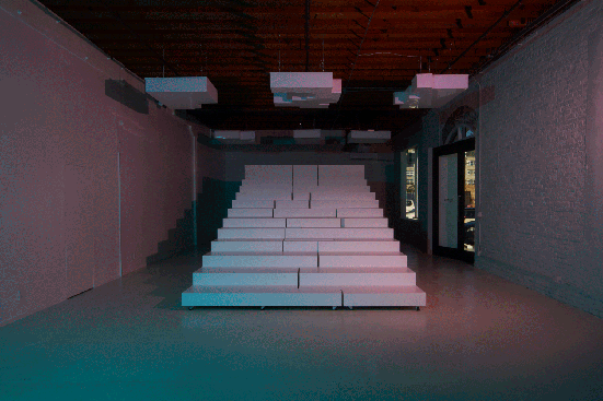 The vision behind the store's design takes inspiration from an earlier project of Lai’s entitled Briefcase House —a house within a house located inside a 1,400-square-foot Chicago warehouse loft. It also references Speechbuster / 99 Chairs, a sculpture that operates as both furniture object and performative space.