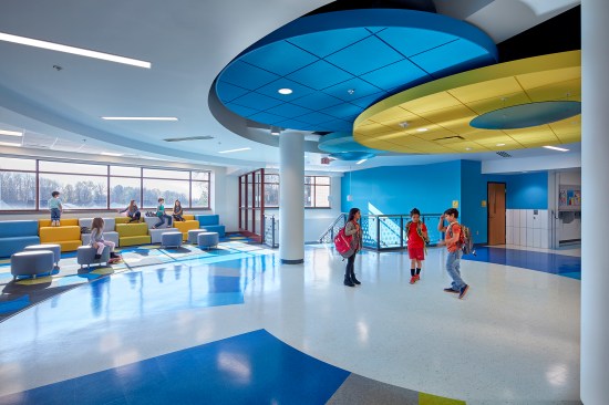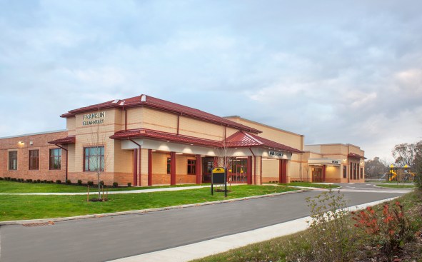 The expansion of Franklin Elementary Schools added 21 classrooms to meet the needs of a growing and shifting student population in the North Allegheny School District. In addition to the classrooms, a new, flexible large-group learning space, music classrooms, and a new cafeteria with a stage.