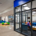 Franklin School District wanted to address capacity issues and add a new Performing Arts Center to the High School campus. To create community pride and transform the existing, relatively windowless high school into a center for community activity, the District used this as an opportunity to completely renovate the school, aesthetically and functionally; changing the way education is provided to the high school population. A two-story learning space was added, as well as a new performing arts center, and the exterior façade redesigned to create a new face for the community. A large portion of the remaining facility underwent substantial renovation, changing the way education is delivered from teacher-centered to student-centered. To achieve a visual and functional transformation, spaces are student-centered and promote collaboration, team-teaching and interdisciplinary project-based learning. The school was completely reorganized, moving away from the previous silo arrangement of disciplines to more flexible spaces that allow for interdisciplinary instruction models. Three S.T.E.M. neighborhoods include a “technical wing” with a combination of Math, Science and Project Lead the Way programs, a “creative wing” featuring an art and media-based suite, and a “humanities neighborhood” focused on the Language Arts and Social Sciences. The design of each neighborhood emphasizes collaboration by incorporating a centrally located “think tank” space, where students and instructors can meet. All neighborhoods are arranged in unison with student commons areas or break out spaces to provide various areas to collaborate, socialize and foster independence outside of the classroom. The use of glass is extensive and promotes the idea of “learning on display” with many exploratory disciplines featuring views to the general circulation areas, allowing students to see what is happening and generate interest in new subjects. Classrooms have no implied front-of- room or pre-determined arrangements, but multiple instruction areas and surfaces where teachers instruct from mobile podiums and flex for various modes of teaching. The rooms are furnished with flexible, movable furniture, including buoy stools, lounge chairs, tables and tablet chairs to provide variety and comfort. At the heart of the new performing arts center, an 850-seat auditorium, with a full array of supporting amenities and state-of-the-art lighting and sound, is a beacon for the community, where outside groups can now come to perform. To allow for maximum flexibility and adaptability in the future, steel columns and beams with no load-bearing partitions were used in the construction of the building. This method ensures that as education pedagogy progresses, the building structure has the ability to adapt without substantive cost measures.