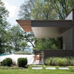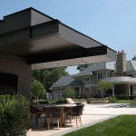 The resulting column-free structure, enabled by cantilevered steel, makes all of the shaded area usable without blocking any views to the Long Island Sound or the rest of the property.
