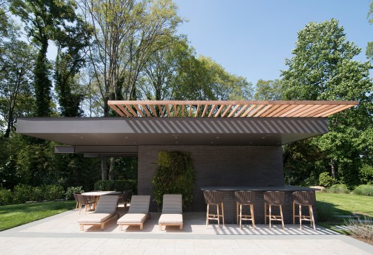 Free Float is a pool house that continues UP’s exploration of contextual contradiction. Located on a 3-acre estate in Sands Point, NY, is a contextual contradiction to the existing neo-traditional home and a testament to the superpower of modern design.