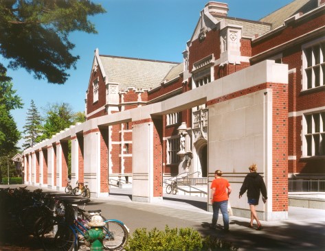 VSBA renovated and expanded Palmer Hall, Princeton University’s original physics laboratory, to house the new Frist Campus Center. The University first proposed a campus center in the 1920s, but the project wasn’t undertaken until the 1990s. Palmer Hall, historically significant though deteriorated and underutilized at the periphery of the traditional campus core, over time became the geographical center of the changing campus. Paths linking academic, social, recreational, and residential activities intersected at the site.
