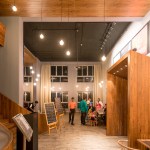 The slabs form a hexagonal grid, which allows for wide views from the apartments and leaves large open public courtyards at ground level. The ‘peaks’ allow for optimized daylight conditions and the resulting inclined roofs allow for a number of exterior terraces, both private and communal. Recessed balconies on the main facades of the residential slabs themselves hint at the diversity of the homes behind, with a mixture of normal size, double-height, double-width and even some L-shaped balconies. The strong graphical appearance created by the balconies is accentuated by large, brightly coloured openings known as “scoops” that puncture the building’s façade to connect with the central corridor, providing public meeting spaces and cross ventilation in all communal spaces in the process. These spaces—which originated in the need to provide refuge spaces to meet the fire code requirements for long corridors—help to give a sense of “neighbourhood identity” to different parts of the building, with each scoop designated for a different activity (such as yoga or mini golf) or for a different type of resident (such as teens or toddlers).
