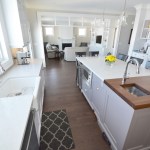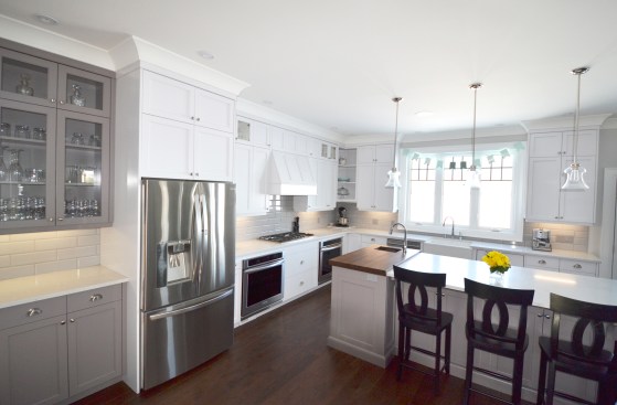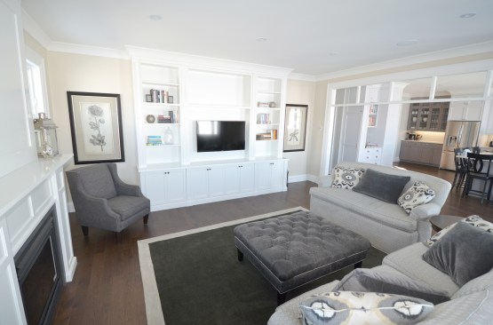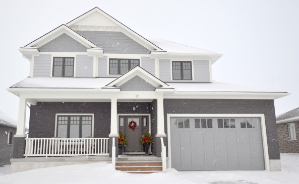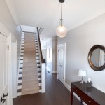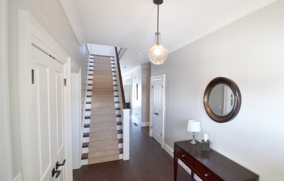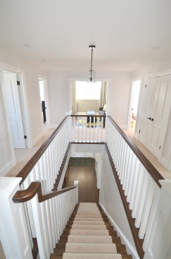 We designed this new build home with a modern appeal and a craftsman influence. The layout is based on a central staircase, creating an open concept to facilitate the needs of this young, active family. Our client had a list of wants that we were able to accommodate in the design, including a large, bright kitchen and living room area facing the backyard, a dining room that could easily transition from everyday use to formal entertaining, a spacious mudroom and roomy upper level laundry. All of the modern conveniences in an attractive package.