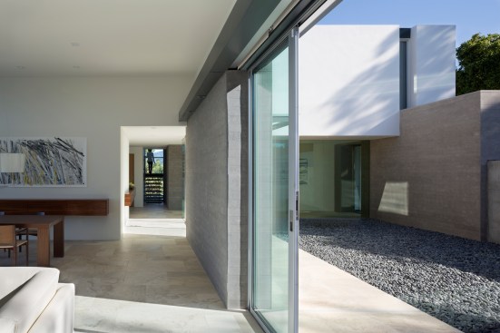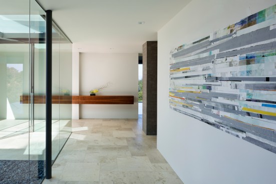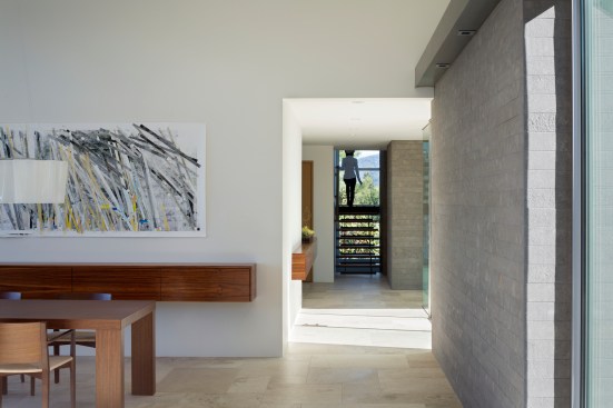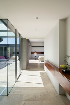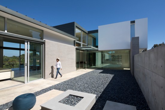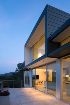 Another aspect of our work (and this home perfectly signifies this) is designing for a California lifestyle which strives to maximize interior living space to exterior space connectivity, both visually and actually. Even with the vast amounts of glazing used to capture the easterly views, this home manages to be a zero net energy house. Although more common in Europe and Asia this is still fairly rare in California or the United States. This was achieved by appropriately placed overhangs, energy efficient glazing, and roof top mounted Photo Voltaic panels which are hidden from view from all ground perspectives on site.
