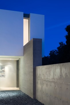 The largest impediment was not be to meet the owners design program of a 3 bedroom modernist home on this small sloping site. This property is located in a planning jurisdiction which enforces older zoning ordinances that prescribe the city wide design of traditional homes. Thru vigilant interaction with the city and with multiple presentations at all stages of schematics, we eventual convinced them in the appropriateness of the design. This has sense opened a dialogue with this community and others in the area to revisit outdated ordinances and to not apply the same massing, materials and proportioning criteria on future Modernist homes.