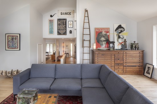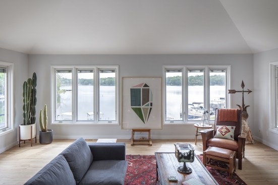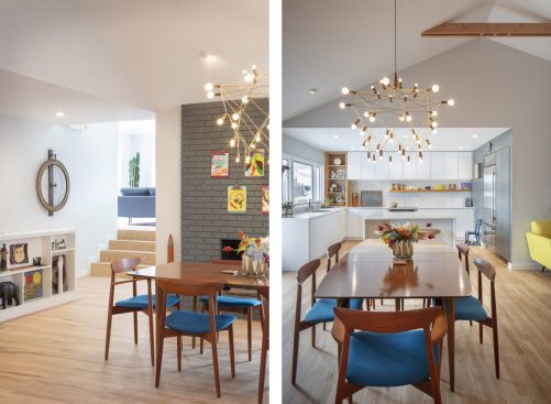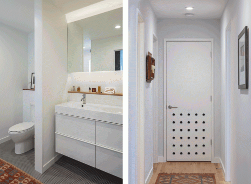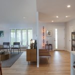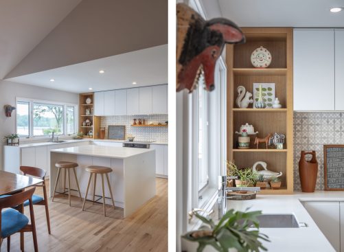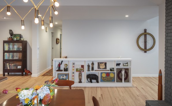 This project was a full renovation of a 1970’s ranch house. The original house was chopped into multiple small-disconnected spaces. In nineties a large and awkwardly placed addition was built to capitalize on the lake view. FD|A was tasked with trying to navigate these constraints of the existing condition along with trying to negotiate the desires of the artist clients, one of whom wanted a contemporary minimal interior while the other is a collector and was more interested in the distinct rooms of the turn-of-the-century house. The finished house is a series of discreet rooms that are continuously linked. The entry space acts as a gallery and has been widened to create a clear relationship to the addition. What had been the original house has now been divided into kitchen, a combined living-dining room, and an office/guest bedroom.
