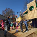 It needed to reflect the Reggio-informed learning principles that form the core of the school’s philosophy: child-directed, direct contact with nature, and welcoming for the whole family. Working closely with school administrators and early childhood faculty, we created the Garden Station which supports the widest range of outdoor play.