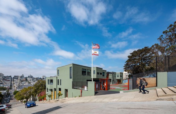 As one of the first public elementary schools in the city, Garfield Elementary School has been providing a rich academic environment for local children for more than 100 years. Today, Garfield is a small, tight-knit community serving 240 children of diverse cultural and economic backgrounds in grades K-5. The building is a four-story stepped building perched on Telegraph Hill below the historic Coit Tower in San Francisco. The site’s rich history included Union Primary School, built around 1868, which was rebuilt after the 1906 earthquake in the same location. The school, as we found it, was designed in the 1970s by Esherick Homesey Dodge and Davis Architects in a different location on the site. This plan had design features that were not conducive to current education methods. This included open classroom spaces with circulation through them, connected with accordion doors, maze-like discontinuous circulation based on the unusually steep site conditions, a lack of organized administrative space, and an unclear entry sequence.