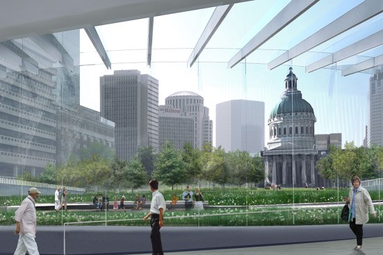 As part of the winning team for The City + The Arch + The River 2015 international design competition, Cooper Robertson and James Carpenter Design Associates, with Trivers Associates, is designing an expanded and renovated Gateway Arch Museum and Visitor Center. Located at the base of Eero Saarinen’s iconic Gateway Arch within the National Park Service’s Jefferson National Expansion Memorial, the underground Museum has suffered from a lack of visibility and is in need of a more relevant and contemporary narrative.