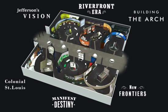 The Museum will expand west towards downtown with a new entrance opening onto a redesigned and expanded Luther Ely Smith Square that will span over the interstate. The design for the expansion and renovation of the Museum strengthens the physical connections between the City and the Arch by means of a dynamic plan that is organized along a linear spine with security, visitor services and amenities at the entry level, followed by a narrative exhibition that leads to the Arch itself on the lower level, and culminates in a tram ride to the Top of the Arch. Nearly 45,000 square feet of new museum space will be added and over 100,000 square feet of existing space to be reconfigured into new exhibition galleries, public education facilities, and visitor amenities. The trip through this exhibit merges seamlessly with the trip up the Arch, and provides a coherent and meaningful context for viewing St. Louis, the River, and out to the West.