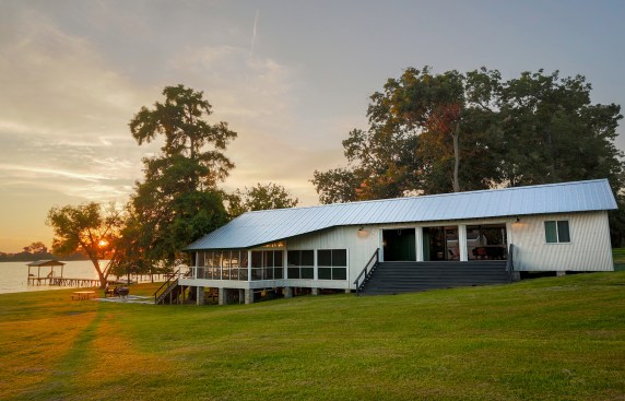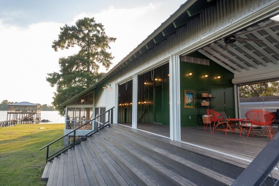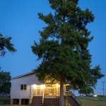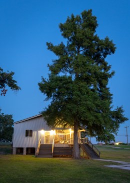 Off a state highway along a “false” river, an oxbow lake made by the Mississippi, lies a narrow site which slopes to the water, shaded by a 100-year-old cypress tree. Descending the slope, a long skinny camp lies ready for summer weekends and fishing.