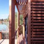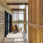 The architecture of the lodges dialogues perfectly with the lake reeds, taking up the vertical and elegant upward momentum and then rationalizing their arrangement, much more geometric, regular and repetitive. In this way the hut remains hidden by a wooden filter, like a light screen, that in addition to being the same structure for the parapets and the pergola, filters the direct view on the terraces of each lodge. Those vertical screens are of different densities and they allows to shelter from the sun and the wind.