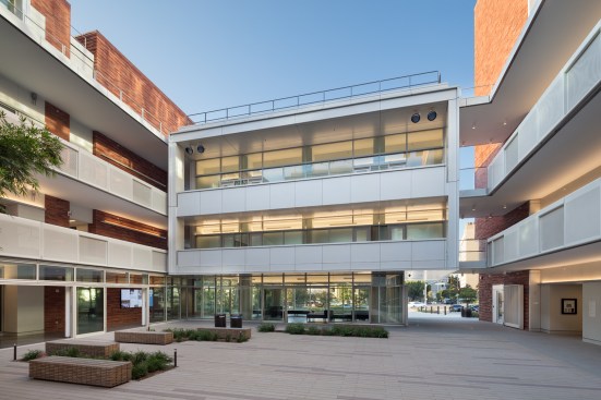 Located at the southeastern corner of the University of California, Los Angeles (UCLA) campus between the Center for Health Sciences and the neighboring Westwood community, Geffen Hall serves as a gateway for the David Geffen School of Medicine and the UCLA campus as a whole.